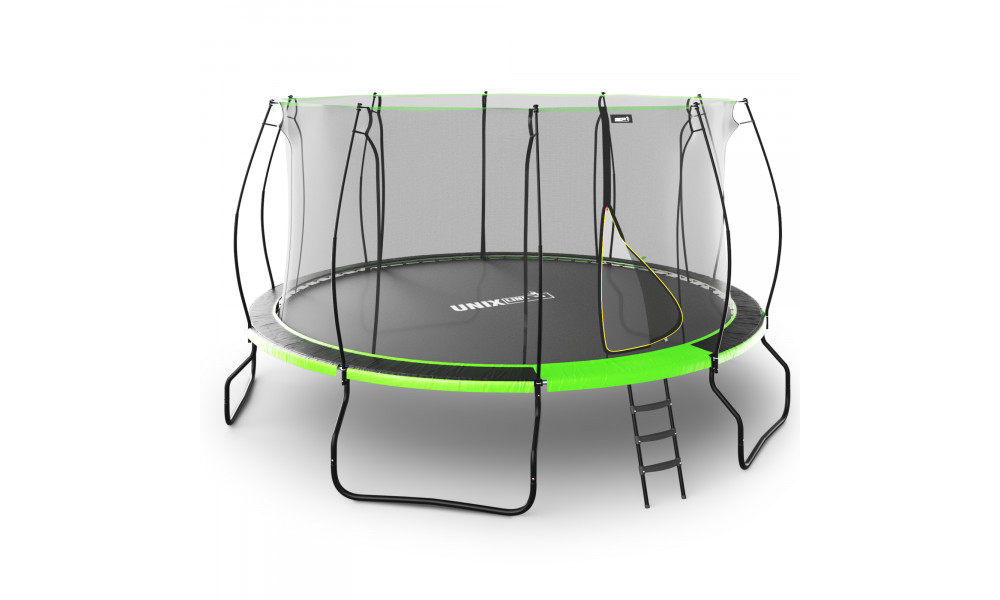 Каркасный батут UNIX Line UFO 14 ft с защитной сеткой - идеальное сочетание безопасности, надежности и веселья, что делает его отличным выбором отдыха и развлечения детей и взрослых! Главное преимущество серии батутов UFO – устойчивость – благодаря широким изогнутым ножкам, которые выходят за диаметр батута, конструкция получается максимально устойчивой и неподвижной даже во время самых активных игр. Металлический каркас батута выполнен из прочной гальванизированной стали, обеспечивающей устойчивость и надежность во время прыжков. Защитная сетка 180 см вокруг батута предназначена для предотвращения падений и обеспечения безопасности во время активных игр. Защитная сетка с застежкой молнией предупреждает попадание на полотно посторонних предметов или домашних животных. Батут UNIX Line серии UFO – это отличный выбор для родителей, которые хотят обеспечить своим детям безопасные и интересные занятия на свежем воздухе. Он поможет развить физические способности детей, а также принесет много радости и удовольствия всей семье. Внутренняя защитная сетка с термоскрепленными нитями расположена по периметру рамы батута. Сетка изготовлена из качественного и эластичного материала Polyethylene, который более устойчив к воздействию влаги и УФ-излучения. 80 пружин, скрытых под накладкой, обеспечивают оптимальное натяжение полотна и отличный отскок! Широкое прыжковое полотно 427 см производится из специального высокопрочного материала Permatron, устойчивого к любым неблагоприятным воздействиям окружающей среды и механическим воздействиям. Permatron – эластичный материал, легко возвращающийся в исходное состояние при постоянном воздействии с разной нагрузкой. Он устойчив к внешним воздействиям: ультрафиолету, плесени, влаге, резким изменениям температуры. Термическая обработка делает эту ткань устойчивой к постоянным изгибам и стрессовым нагрузкам. Подходит для применения дома и на улице, этот материал не боится осадков и воздействия солнечных лучей, также обладает антисептическими свойствами. Максимально допустимый вес пользователя 150 кг. Размер прыжковой зоны: 383 см. Высота ножек: 80 см. Высота всего батута: 260 см. Прыжки на батуте — это отличная аэробная нагрузка: улучшения общей физической формы, заряд положительными эмоциями, улучшение работы кардио системы, развитие чувства равновесия и координации, подойдет для пользователей любого возраста. Занятия на свежем воздухе укрепляют иммунитет, повышают выносливость. Главным приоритетом компания ставит безопасность детей, поэтому наши батуты изготовлены в соответствии со всеми требованиями из высококачественных материалов. Батут способствует развитию координации движений, баланса и гибкости, что положительно влияет на здоровье и физическую форму детей. Гарантия на батуты составляет 2 года. Большой батут также оснащен удобной пластиковой лестницей для комфортного использования. Благодаря прочной конструкции и высококачественным материалам, каркасный батут для улицы способен выдерживат...